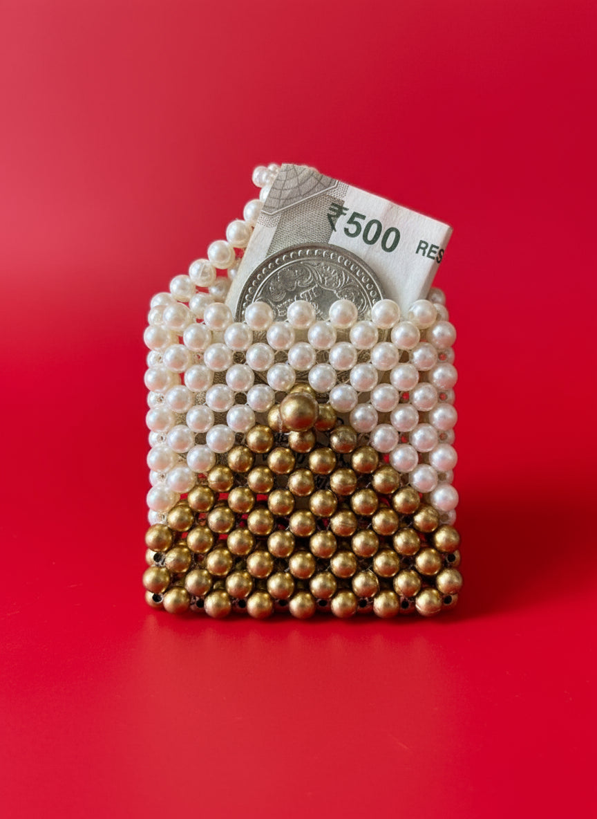 Handcrafted Pearl Envelope Pouch for Silver Coin and Money | House of Madhulika